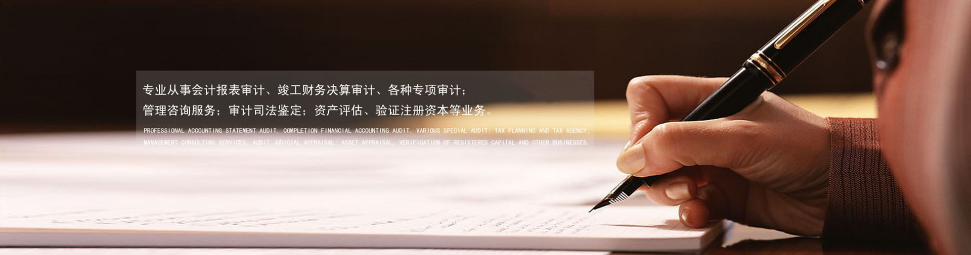 熱門關鍵詞: 會計報表審計,竣工財務決算審計,各種專項審計,管理咨詢服務,審計司法鑒定,資產評估,驗證注冊資本